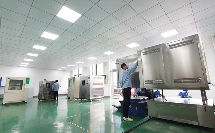 公司设有‘实验检测中心’。配置了产品的检验、试验设备30余台,拥有全自动配光检测系统及35米标准暗室、三综合振动系统、温度冲击试验箱、冲击碰撞台、高低循环、盐雾、防尘、淋雨、三坐标、X荧光光谱仪、投影仪和端子分析装置等设备,为生产全过程提供可靠的质量保障手段,从根本保证灯具质量。